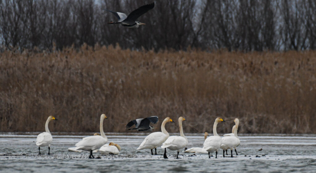 Lebede de iarnă și stârci cenușii © Bogdan Ciortan