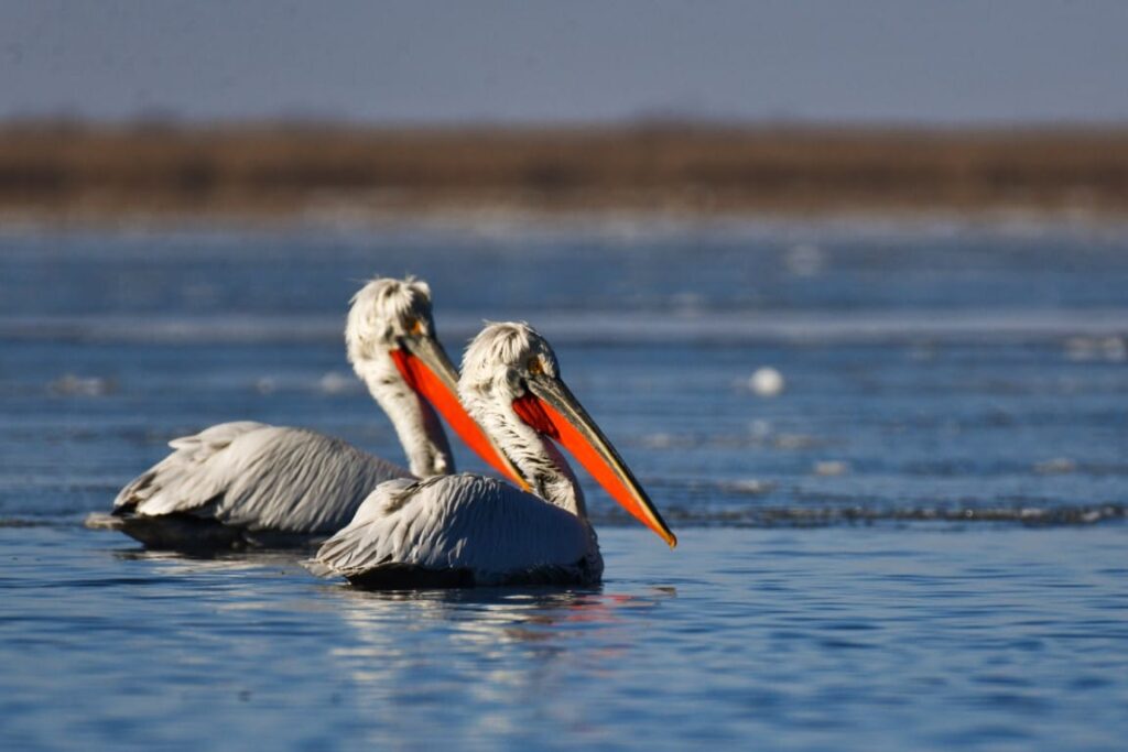 • cei 831 de pelicani creți (Pelecanus crispus)