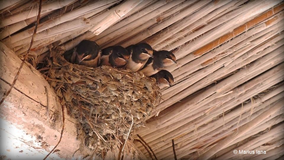 Rândunica (Hirundo rustica) este zidarul din grupul nostru. Jumătatea de cupă, în care încap până la 7 pui, e construită din noroi, întărită cu iarbă uscată, paie sau chiar păr de cal. Ce mai, Pasărea Anului 2020 își mânuiește ciocul mai bine ca un zidar canciocul. Stă bine și la capitolul cunoștințe de termoizolație, astfel că interiorul vine căptușit cu ierburi uscate și pene. Nu vă gândiți că e treabă de mântuială, doar pentru că citiți cuvinte precum iarbă, paie și pene. Cuibul rândunicii rezistă 12-15 ani, cu un record înregistrat de 48 de ani! Cam de la câți Dorei ați primi așa o garanție la achiziționarea locuinței? Da, mă gândeam că așa veți răspunde. Unde e amplasat cuibul vestitorului primăverii știți cu toții, dar în caz că mai avem corigenți la ornitologie vă spun pe scurt: de pe stâncile și din peșterile originale, pasărea și-a mutat cuibarul sub streșinile noastre și în poiata Joianei, deși această alegere imobiliară este tot mai puțin disponibilă.
