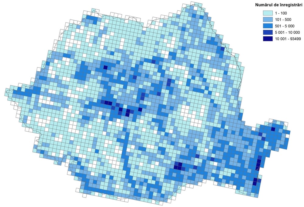Dacă ne concentrăm strict asupra datelor ocazionale simple sau organizate sub formă de Liste Complete încărcate în Ornitodata în ultimii 5 ani (date colectate aproape exclusiv voluntar) și încercăm să le vizualizăm pe o hartă, observăm că ies în evidență mai multe aspecte. Vedem colorate mai intens regiunile în care se concentrează preponderent observațiile. Acestea sunt, în cele mai multe cazuri, zone fierbinți pentru observarea păsărilor, cu abundență de specii și exemplare. Zonele respective sunt utilizate frecvent de păsările în migrație, dar și de către observatorii care aleg să își petreacă acolo timpul liber, datorită posibilității mari de a se întâlni cu „rarități” ale ornitofaunei.