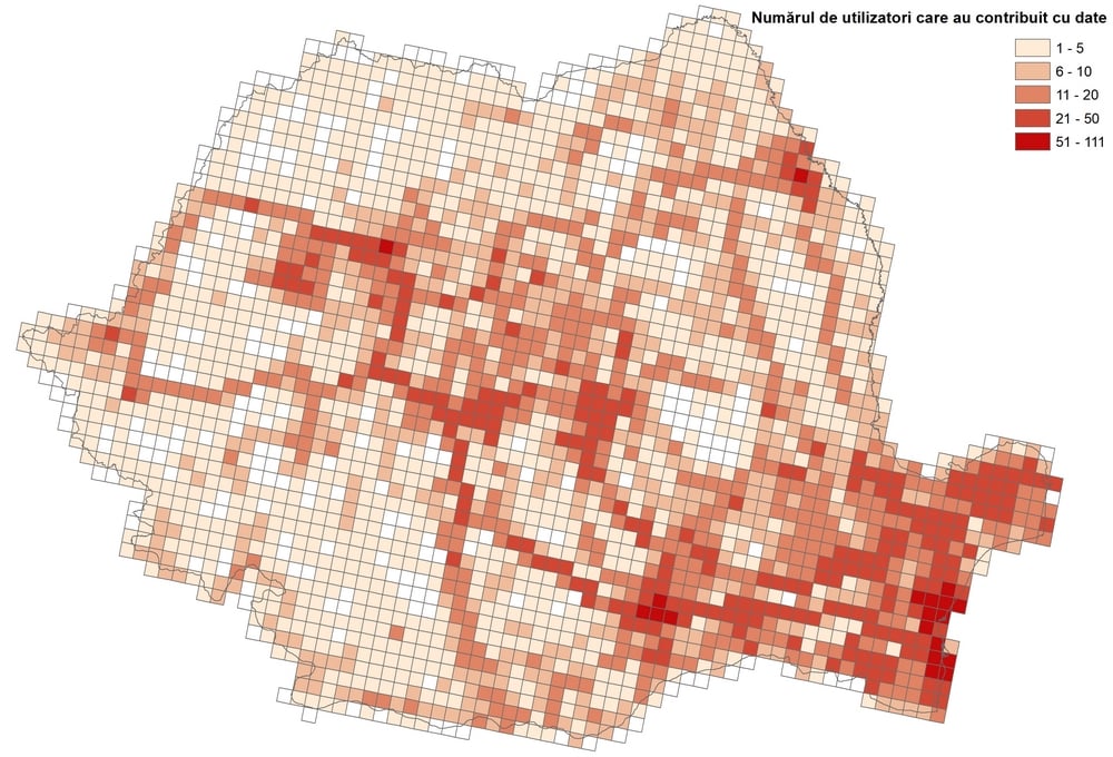 Pe lângă aceste zone, ies în evidență și locurile în care se găsesc în general mai mulți observatori, cum sunt orașele mai mari. Aceste aspecte se disting și în a doua hartă, care prezintă numărul de utilizatori care contribuie cu date pe fiecare zonă. Pe lângă locurile cu mulți observatori rezidenți și cele „fierbinți”, căutate de toată lumea, se observă cu ușurință și traseele de deplasare spre zonele fierbinți.