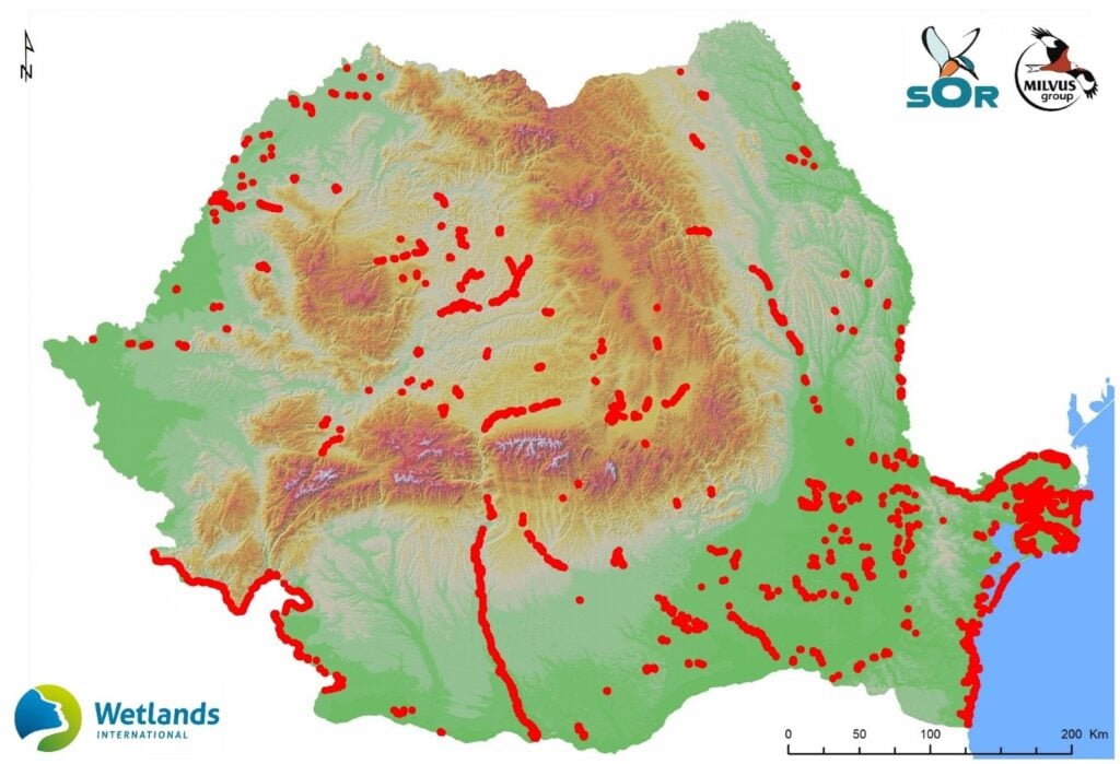 Harta locațiilor acoperite la Recensământul Internațional al Păsărilor de Apă în 2026